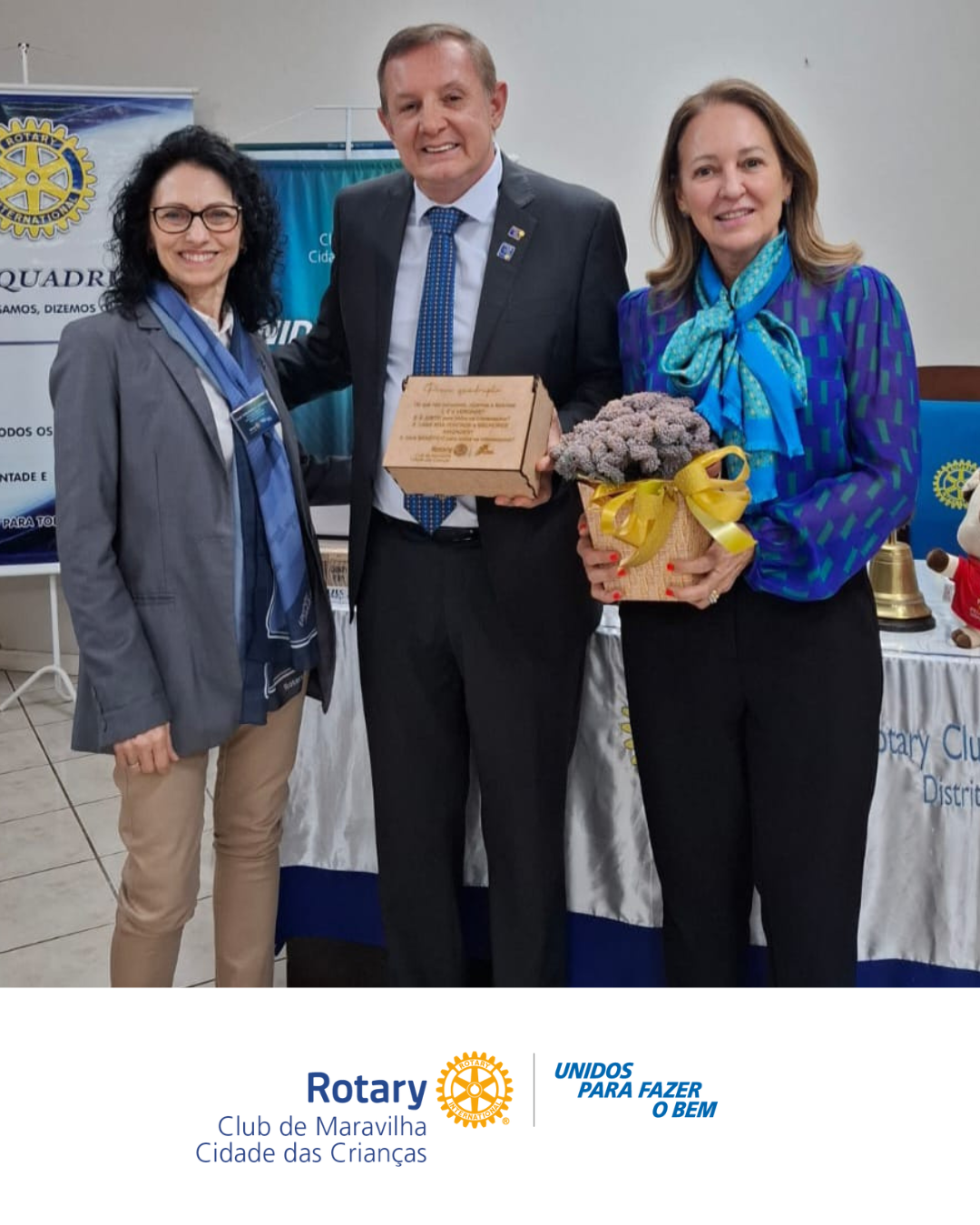Em sua fala, o governador destacou com ênfase o valor do companheirismo, essência que nos une como rotarianos. Reforçou a importância de nos cumprimentarmos, de estarmos atentos uns aos outros, de cultivarmos gestos simples que, quando somados, constroem relações de confiança, apoio mútuo e amizade verdadeira.