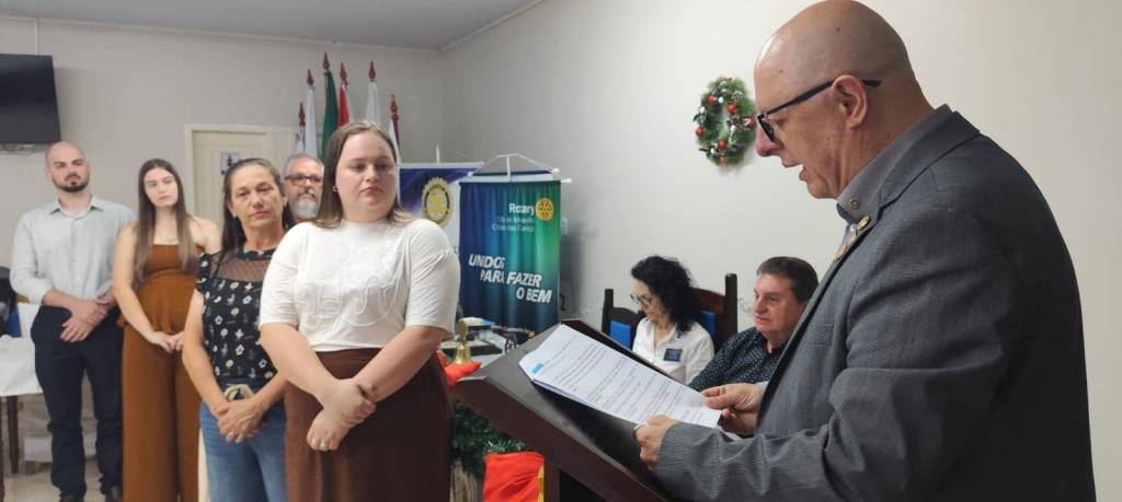 Foram empossados: Marizete Badia Fior, Daniela Murari, Marilene Corogodsky, José Luiz Proença, Evandro Carlos Albrecht e Geovana Schneider, apadrinhados por companheiros que não apenas os convidaram, mas também compartilharam sua história, talentos e motivações, reafirmando que o ingresso no Rotary sempre nasce de um encontro de valores, de visões e de desejo de contribuir com algo maior.