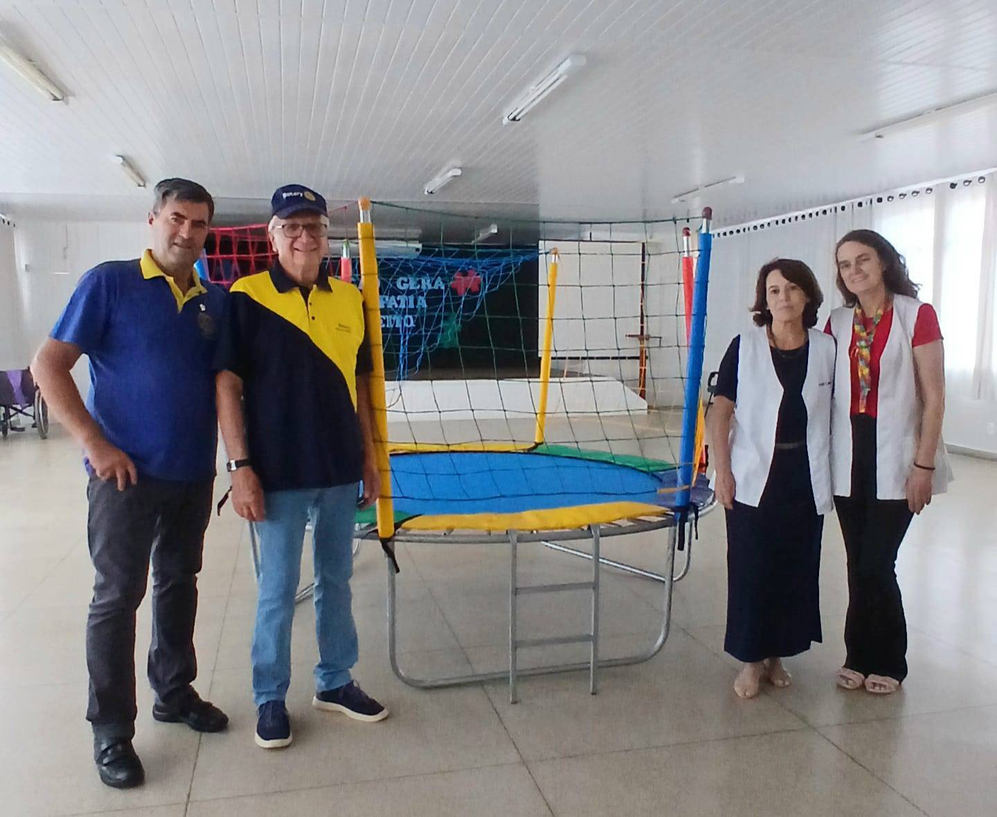 Entrega como doação para a APAE de Mafra de um brinquedo estimulante "Pula Pula" pelos companheiros Rodney Heyse Presidente e Ilton Rechetello companheiro Governador Assitente, com a presença das senhoras representantes da APAE, Cleide da Silva secretária e Inesir Vicente Orientadora Pedagógica.
