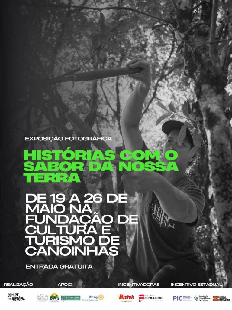 Nos dias 19 a 23 de maio a população canoinhense pode acompanhar a exposição fotográfica Histórias com o Sabor da Nossa Terra, que chega a Canoinhas. A mostra, que busca retratar a origem dos alimentos, valorizar os produtores e conectar o público às suas raízes, estará aberta para visitação gratuita na Fundação de Cultura e Turismo de Canoinhas, das 8h às 12h e das 13h às 17h.
