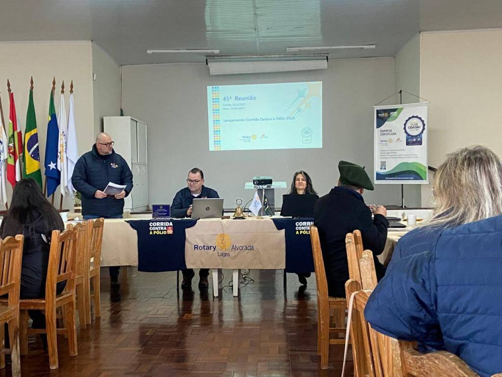 O Rotary Club de Lages Alvorada realizou na manhã desta quarta-feira, dia 25 de junho, um café da manhã com representantes da imprensa local para apresentar oficialmente a edição 2025 da Corrida Contra a Pólio. O encontro foi realizado na Casa do Rotary, na Avenida Dom Pedro II, em Lages, e reuniu autoridades rotárias, apoiadores, patrocinadores e jornalistas.