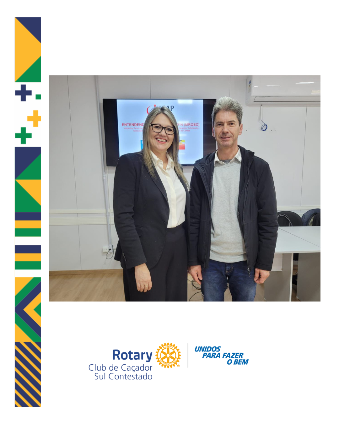 O Companheiro Valtair de Vargas, representando o Rotary Club de Caçador Sul Contestado, participou nos dias 03 e 04 de julho de 2025 do Curso Completo - Entendendo a Lei nº 13.019/2014 (MROSC). O curso abordou os aspectos teóricos e práticos das fases de planejamento, seleção e celebração, execução, monitoramento e avaliação, além da prestação de contas, incluindo as atualizações trazidas pelo Decreto Federal nº 11.948/2024.