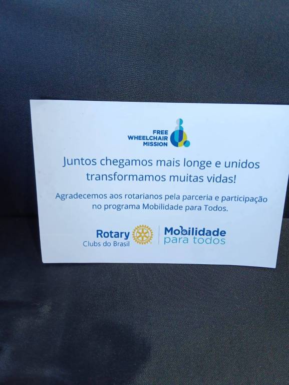 O programa “Mobilidade para Todos”, ao qual o Rotary participa, é uma iniciativa que visa distribuir cadeiras de rodas para pessoas com dificuldades de locomoção, promovendo inclusão social e melhorando sua qualidade de vida. O programa é uma parceria com a Free Wheelchair Mission, uma organização não governamental que doa cadeiras de rodas, e com o Rotary, que atua na distribuição e acompanhamento dos beneficiários. O objetivo é garantir que pessoas com mobilidade reduzida tenham acesso a uma cadeira de rodas adequada, permitindo que participem ativamente de suas comunidades.