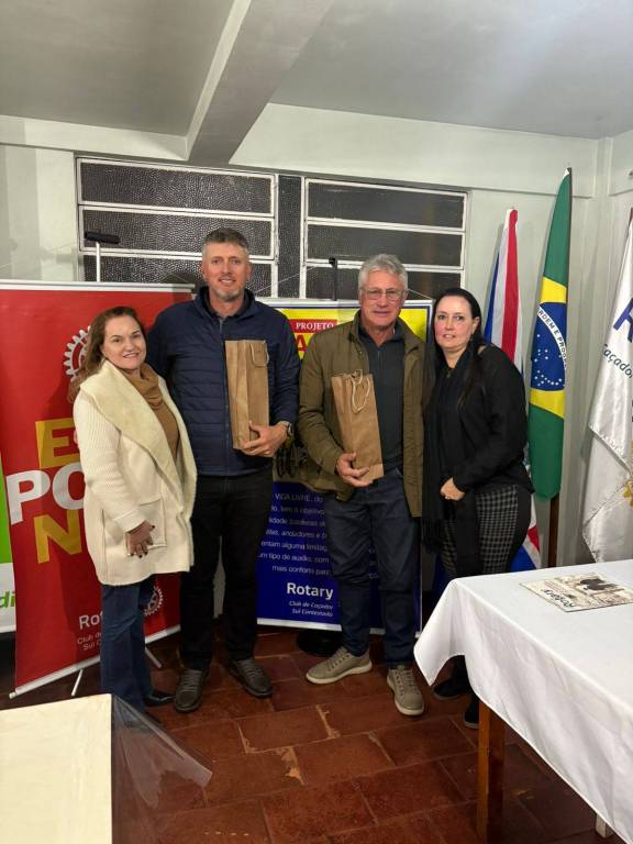 Na mesma ocasião, o Rotary prestou uma homenagem especial ao companheiro Juliano Susin e ao convidado Aldo Dal Bosco, como forma de reconhecimento e carinho pela passagem dessa data tão simbólica. É por meio de pessoas como vocês que seguimos acreditando em um mundo melhor, guiado pelo trabalho honesto, pelo respeito ao próximo e pelo espírito de servir.