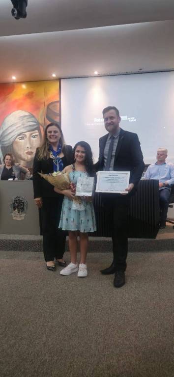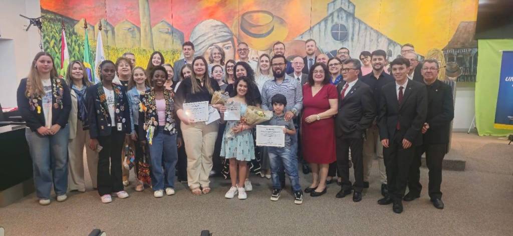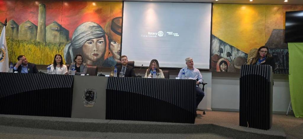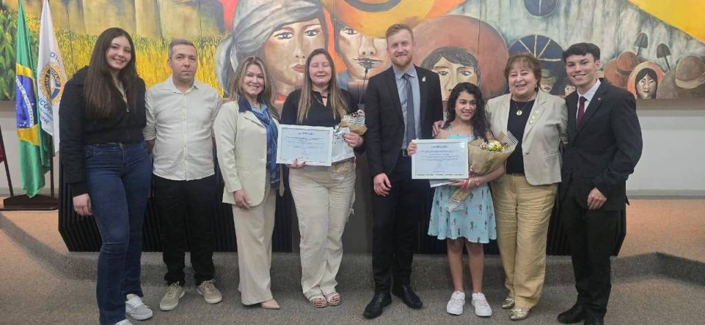Como acontece anualmente no mês de outubro, na noite de 14/10/2025 o Rotary Club de Concórdia realizou na Câmara Municipal de Vereadores, uma solenidade de homenagens para a Professora Destaque e para a Aluna Companheira 2025.