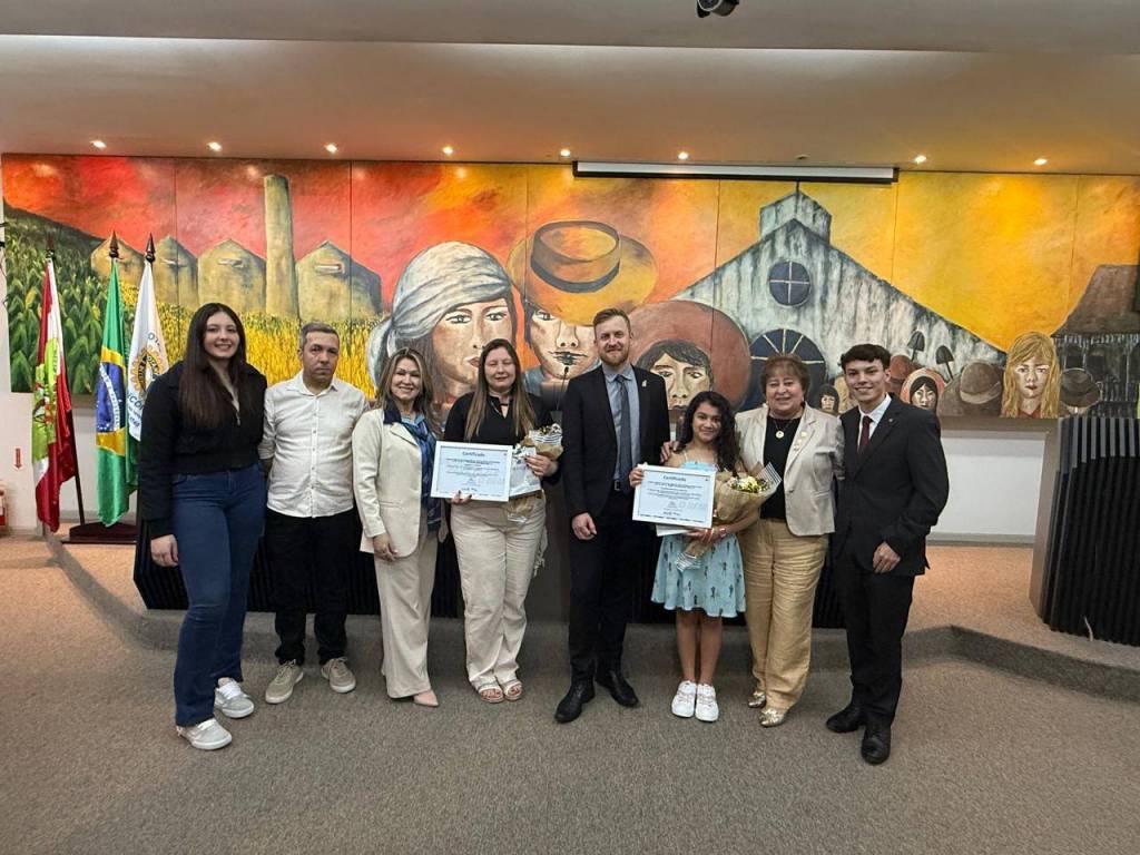 A Professora de ciências Rosemilda Peruzzo foi a homenageada como Professora Destaque deste ano. E a Aluna Companheira homenageada foi a Aluna do Sexto Ano do Ensino Fundamental, Hadassa Emanuelle Brittes.