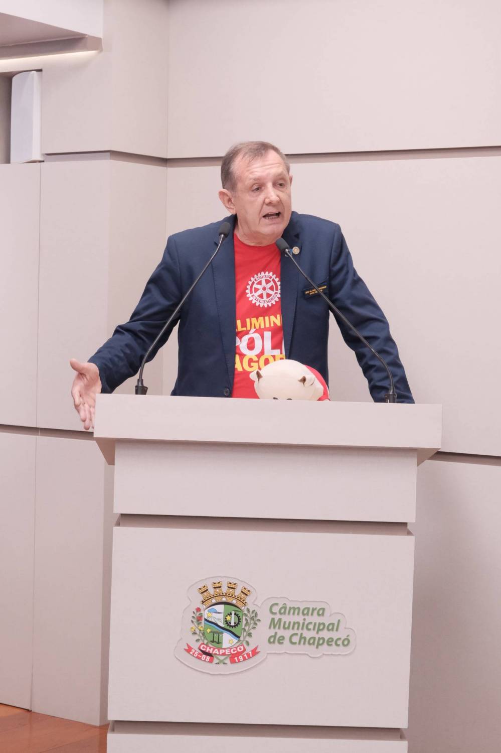 Governador do Rotary visita Câmara de Vereadores de Chapecó para falar sobre a erradicação da pólio