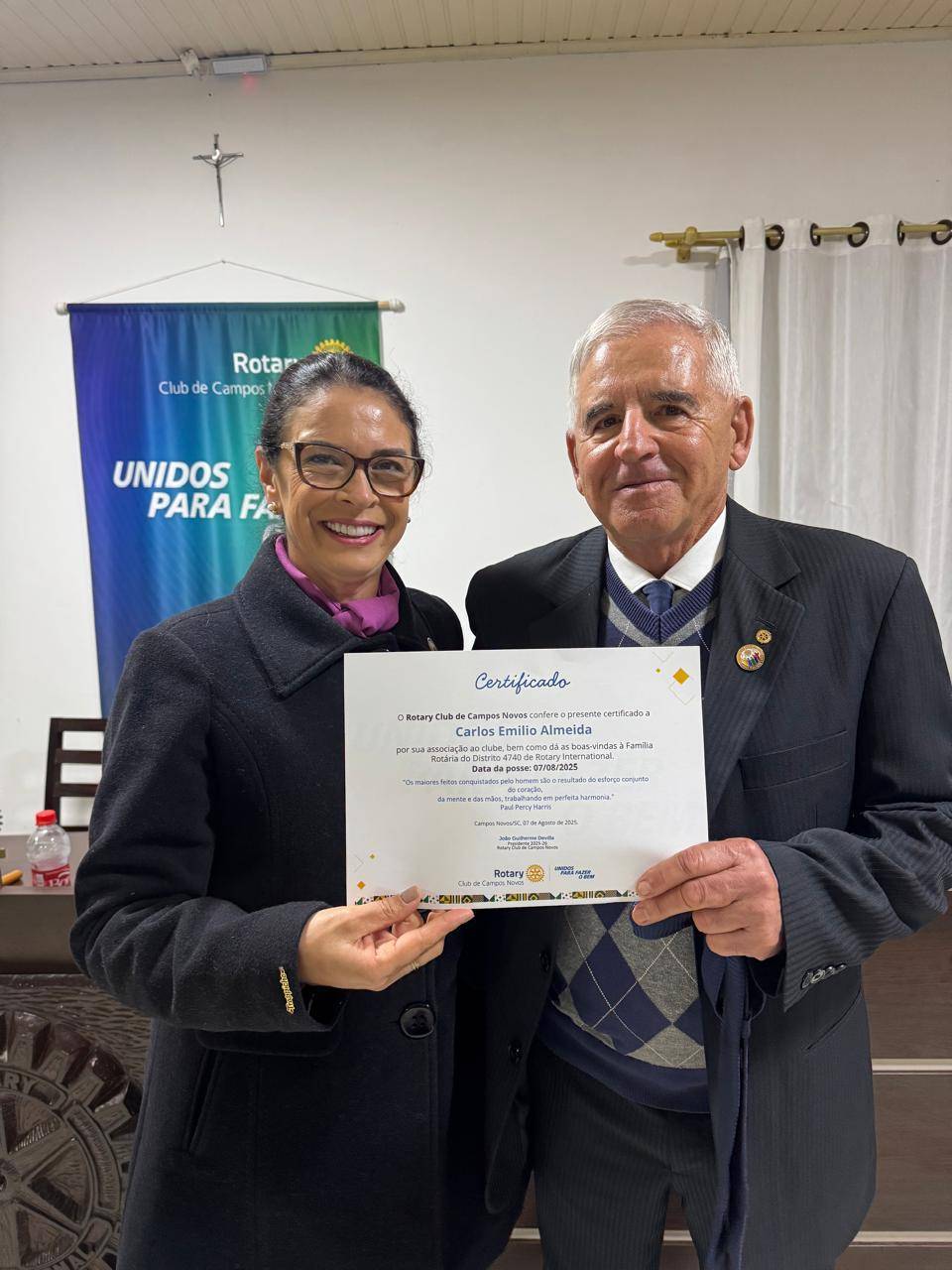 No dia   07/08/25, tivemos a honra de empossar mais um companheiro em nosso Rotary Club. A entrada de um novo membro representa o fortalecimento de nossos ideais e a continuidade do compromisso com a ética, o companheirismo e o serviço à comunidade.