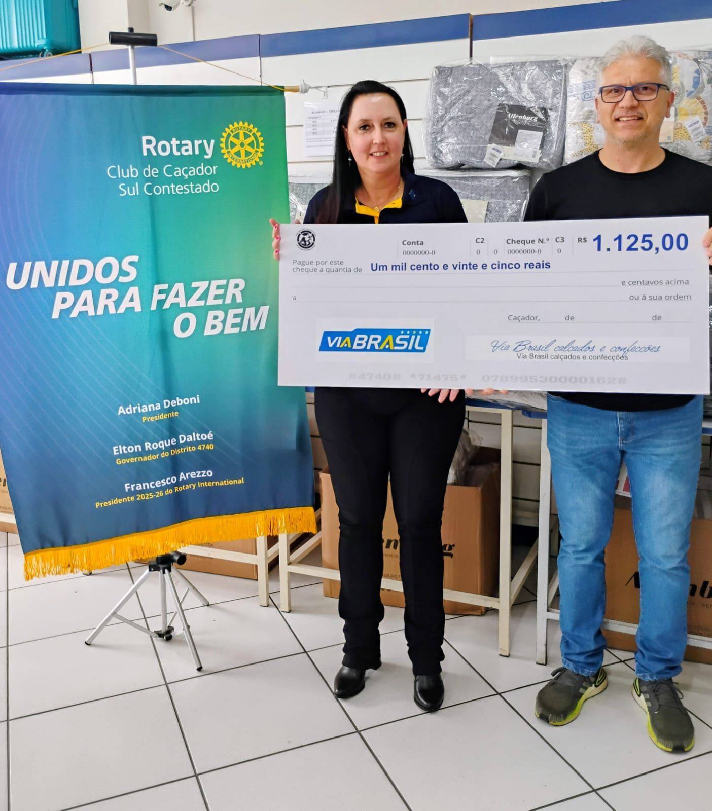 O Rotary Club de Caçador Sul Contestado recebeu da Via Brasil um cheque referente à parceria realizada durante o Feirão da Altenburg, onde uma parte do valor arrecadado foi destinada ao nosso clube.