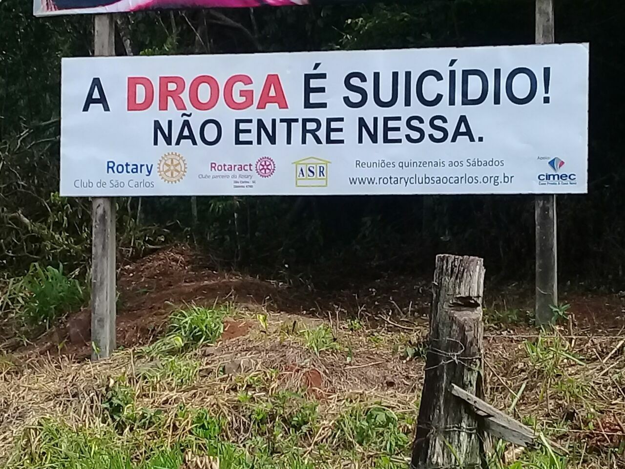 O Rotary Club de São Carlos atualizou revitalizando no começo de outubro a sua placa: A DROGA É SUICÍDIO!NÃO ENTRE NESSA.