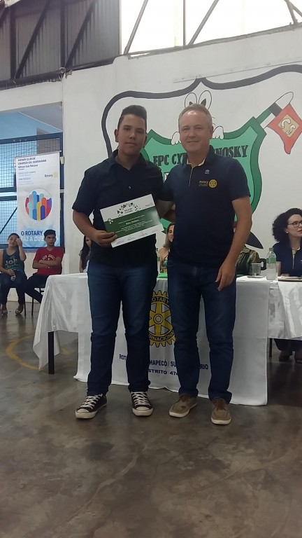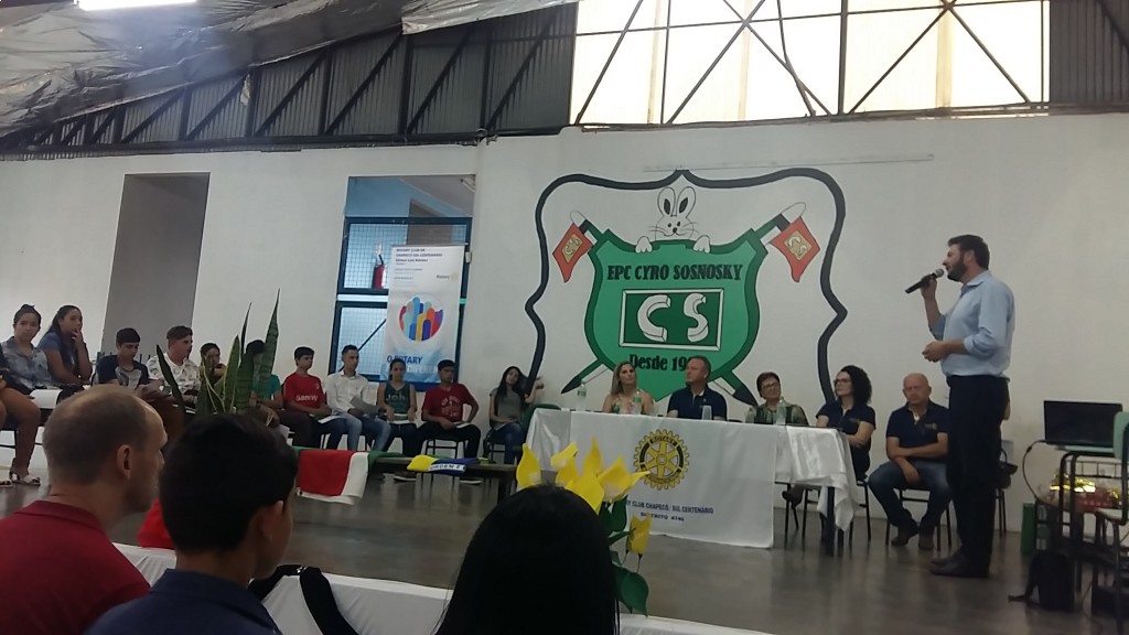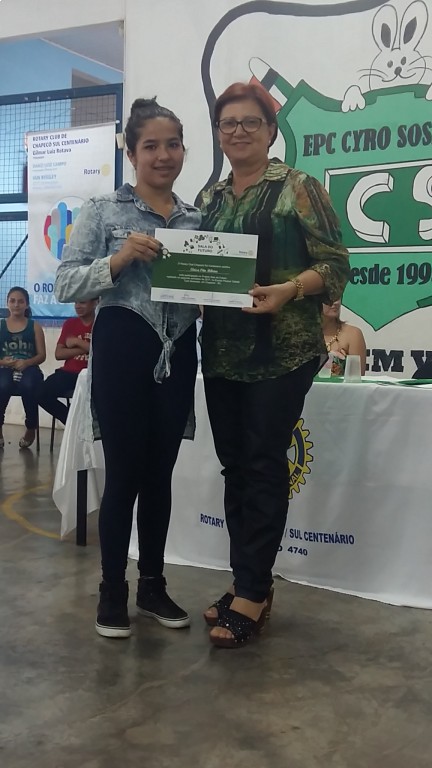 Com muito orgulho, companheiros do Rotary Club Chapecó Sul Centenário realizaram a formatura da primeira turma do Projeto Sala do Futuro. O projeto, que foi realizado na Escola Parque Cidadã Cyro Sosnoski, teve 16 encontros no segundo semestre do ano, todas as quartas feiras, com o objetivo de debater temas como profissão, finanças, empreendedorismo, saúde, entre outros. De uma forma próxima e simples, ministrada pelos próprios companheiros e convidados. Um projeto especial, já consolidado, que tem o carinho de todos. E isso foi constatado nessa noite de homenagens, que teve a presença do representante do Distrito e da Secretaria Municipal de Educação, além de representantes da impensa.