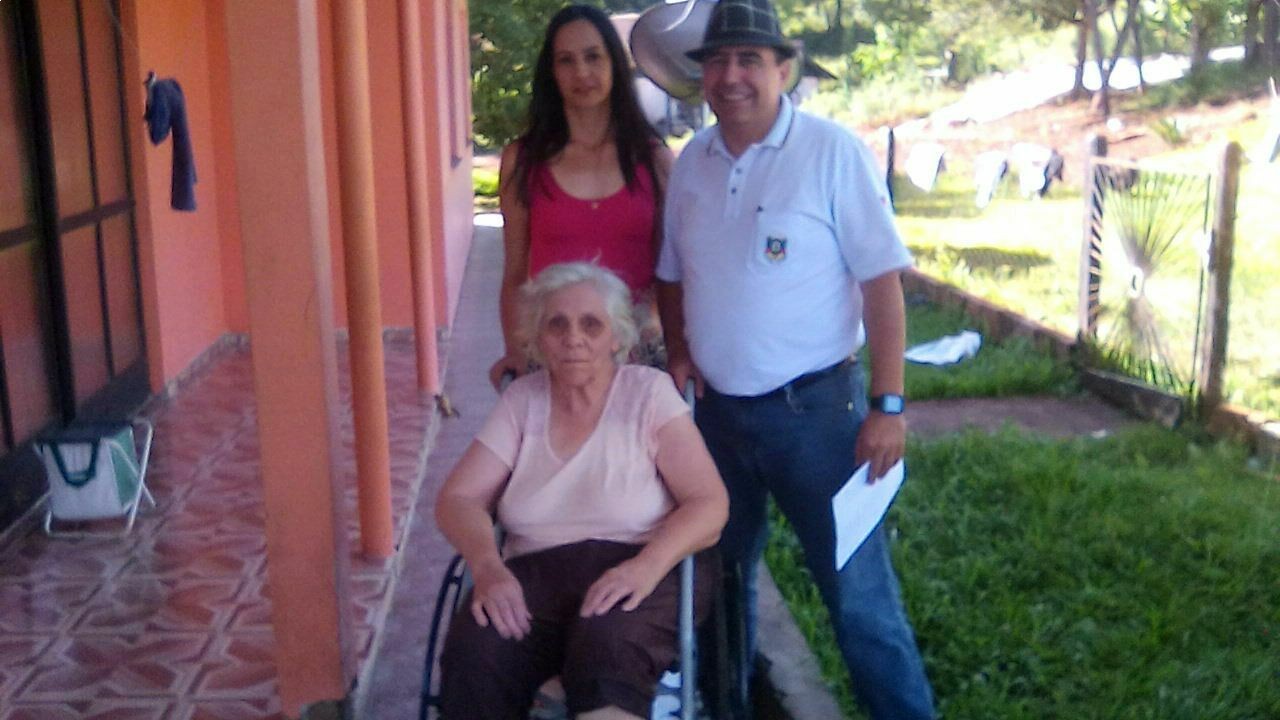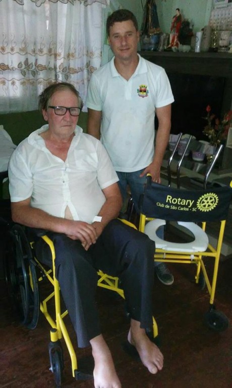 Uma cadeira para a senhora Nagibe Maria Duz de 78 anos e uma cadeira de rodas reforçada e uma cadeira de banho para Armando Ulrich de São Carlos.