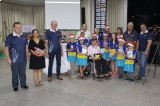 A sexta-feira (22) marcou um momento histórico para o Projeto de Inclusão Social “Eu Quero Ser”, realizado pelo Rotary Club de Herval d’Oeste. Após dois anos de muito trabalho e dedicação, as crianças lançaram o 1º CD do Grupo com 10 faixas gravadas. A apresentação aconteceu durante o Natal de Fé no Centro de Eventos Senhor Bom Jesus e reuniu pais, amigos e alunos do Projeto. O trabalho de inclusão é idealizado e coordenado pelo professor Roberto Garayo, que há mais de cinco décadas dedica-se ao trabalho com crianças por meio da música. Na ocasião, Garayo recebeu duas homenagens: uma do Rotary Club de Herval d’Oeste e outra dos pais dos alunos que fazem parte do Projeto “Eu Quero Ser”. “Me sinto feliz com essa homenagem. Aproveito aqui para agradecer a todos aqueles que durante todo este tempo sempre acreditaram neste projeto, em especial ao Rotary Club de Herval d’Oeste e a Casa da Amizade Roselaine Matevi pelo apoio incondicional. Quero dizer ainda que para projetos lindos como este não terminarem, o apoio da comunidade é fundamental. Por isso se envolvam, participem e continuem a construir essa linda história feita por estas lindas crianças”, disse o professor Roberto. Ao final, um vídeo contando detalhes de sua vida foi apresentado a toda a comunidade. Participação na gravação do CD As dez faixas do CD do Projeto Eu Quero Ser possui a participação dos seguintes alunos: Erick Barth, Emerson Ari Gomes de Oliveira, Henrique Panerai, Kaike Bortolussi, Larissa de Souza, Luiz Antônio Mozer, Marcos Vinicius Keller, Maria Jhulia Garayo Isler, Nicoli Soster, Ramon Carlos da Silva, Rayanne Mattinson. Israel Moreira e William Farias. Os interessados em comprar o CD podem ligar para o telefone (49) 984136563.
